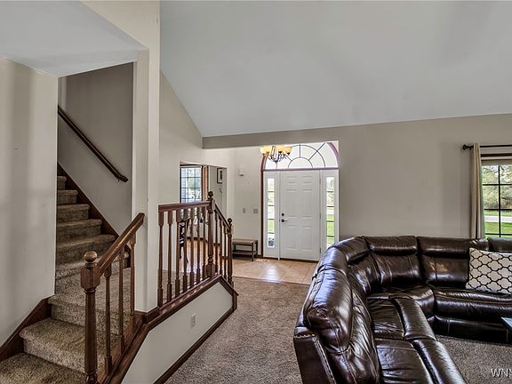 Welcome to this charming, well kept, 4 bedroom 2.5 bath home on 1.71 acres in Clarence! Walk into the lovely 2 story foyer! Formal dining room with great molding package is large and inviting. Great room with gas fireplace has a cathedral ceiling off of kitchen, making a wonderful space for entertaining. Fully applianced granite, eat-in kitchen with large island and pantry - granite countertops, SS appliances, sink & lights updated (2023). Heated sunroom for additional living space is lovely with great backyard views. 2nd floor laundry (remodeled 2024). Spacious bedrooms. Finished basement (partial) with office/den and egress window. Great storage! Exterior large concrete patio with built-in firepit (2022). Large fenced yard (2024). Raised veggie garden with irrigation is also surrounded by a 6 foot tall deer fence. Extra turnaround on concrete driveway, easily parks 3 cars (2022). Huge Garage with newer garage door (2022) also has a garage door to the back yard; the additional length in the garage adds unlimited possibilities! Fresh paint in many areas, water backup sump pump, too much to mention! Clarence Schools. Offers, if any, due Monday, 5/12, at noon. Open House Saturday, 5/10, 1:00p-3:00p.