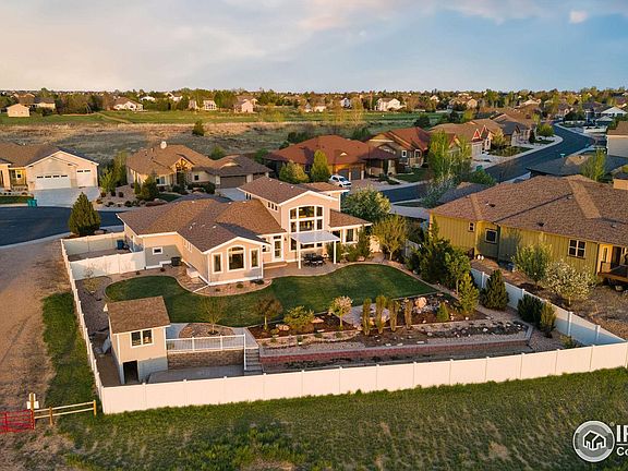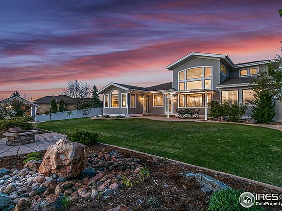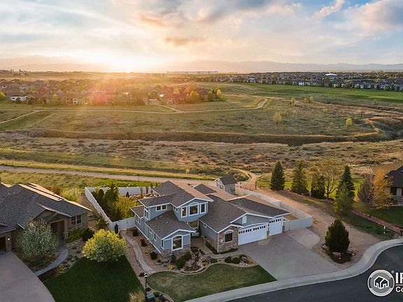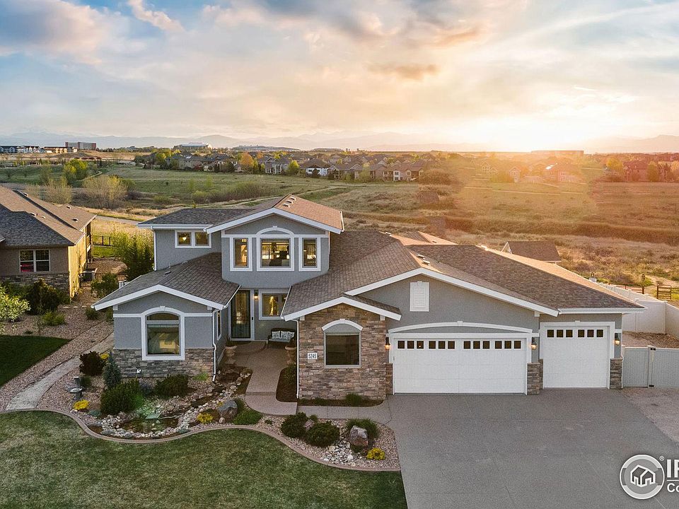 Welcome to 5245 Rockingham Ct. in Windsor! This property has an unobstructed panoramic view of the front range, NO HOA, NO metro tax, side yard parking, cul-de-sac, and so much more! With only one owner since it's construction, this presents an incredible opportunity to own a wonderfully maintained, custom, one of a kind, high quality home that rarely comes on the market. A shop and/or secondary residence can be added! Be greeted by soaring ceilings in the living room. The abundance of windows creates a spacious, bright space and gives you easy access to see the amazing views that comes with this property. Andersen high efficiency fibrex, double pane casement windows with low-e glazing. Solid oak floors throughout, new carpet and luxury 8-inch-tall baseboards. The gourmet kitchen includes 5ft built in fridge/freezer, solid maple white custom cabinets, roll-out and drawers throughout, rolling pan storage, GE profile appliances, new (2023) induction cooktop, new (2023) separate double oven with rollout shelving, new backsplash tile, new quartz countertop and 8ft quartz kitchen island, new granite composite sink, oversized walk-in pantry. This home is a 2-story that lives like a ranch with a loft. Main floor primary bedroom with private access to the backyard. Primary bathroom includes radiant floor heating, new lighting, and new vanity mirrors. Large walk-in shower, private toilet, and dual sinks. Walk-in primary closet off the laundry room with solid oak flooring and professional built closet system, built in hampers, drawers, and shoe shelving. The oversized 4 car garage includes ample storage, epoxy flooring, separate workspace, and loft. The basement has new carpet and new paint. A 5th bedroom can easily be added! This home was beautifully landscaped with all perennial plants, plum and apple trees and large garden, concrete curbing, exposed aggregate concrete, 3-story storage shed, covered back porch, fire pit, abuts open space, Coyote Park and trails!