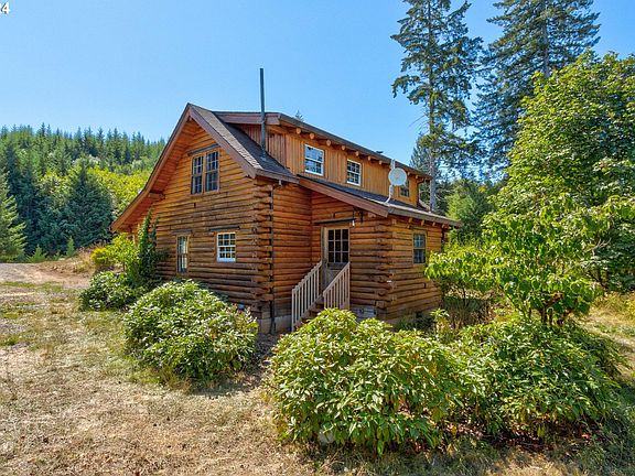 Tucked away on 2.4 serene acres, this charming log cabin offers the perfect blend of rustic tranquility and modern convenience. Located near Banks off the Sunset Highway and just an hour from stunning Cannon Beach, this property provides the feeling of being off-grid while still being connected to everything you need.The cabin itself exudes warmth and character with its classic log construction, cozy interiors, and abundant natural light. Enjoy the spacious living area with a beautiful stone fireplace, perfect for chilly Oregon evenings. The open kitchen is ready for your personal touch, featuring wood cabinetry and ample storage space.Upstairs, you'll find 2 bedrooms with picturesque views of the surrounding forest, making it an ideal retreat for relaxation or creative inspiration. Whether you're seeking a weekend getaway, a year-round residence, or an investment opportunity, this log cabin offers endless possibilities. Experience the best of Oregon's natural beauty while being just a short drive from the coast and city conveniences.Don't miss your chance to own this unique property that truly feels like a world of its own!
