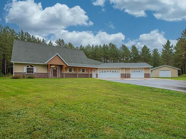 Turnkey country home. If you are looking to move to the Northwoods and enjoy a neighborhood setting with generous sized lots, come take a look. This well-designed home has 3 bd 4 ba and ample garage space. Main level features: attractive kitchen with center isle and stainless appliances, open dining area, 3-season sun room, living room with stone accented wall, a hobby room within ear shot of the kitchen area (ideal homework space?), master suite w/ tray ceiling & accent lighting, 2 walk-in closets and lg custom shower. Two additional bedroom suites and a den or hobby space complete the upper level. Enjoy 3-car heated attached garage, one stall with cabinets and running water. An additional detached garage is 17'x28' and has a concrete pad, currently a dog kennel. Exterior amenities, blacktop drive, patio, fenced garden, attractive driveway pillars. Located in the Town of Pine Lake just north of Rhinelander offering convenient access to Sugar Camp, Three Lakes, Eagle River.