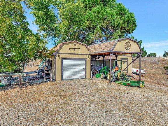 Peaceful & private 2002 sq ft home on over 32 acres of gently rolling hills. 3 bed 3 bath country ranch home. Open concept kitchen / dining / living areas with high ceilings. Kitchen has a large center island, great for entertaining & family gatherings. 3rd bedroom is a large loft area with enough room for a full size bed. Master bedroom features en suite with dual vanity and separate shower and bathtub. Enormous deck space with covered area and a wood fired hot tub. Beautiful outdoor custom full bathroom and shower. 3 car garage, 4 storage buildings, and a covered carport large enough for an RV and all your toys and hobby needs. The property is all very useable with a large playground, several tree groves, perfect for horses or livestock, dirt bikes, walking trails and fun for the entire family. Property has a Tesla backup battery to ensure uninterrupted power. Private well with a dedicated water storage tank creates a reliable water supply. Enjoy boating life at nearby Lake San Antonio or the local vineyards of Paso Robles.