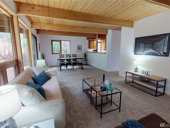 First time on market for this Dutch Colonial-style Lindal Cedar Home! 3 bed, 1.5 bath, 1,655 sq. ft. on a 6,000 sq. ft. lot. Freshly painted inside and out. Wood beam ceilings smile down on new carpet and laminate flooring. Soak up the sun on the wrap-around front deck and/or the new deck in back. Master bedroom has vaulted, wood beam ceiling and slider to an upper deck. Versatile, open floor plan. Generous west-facing windows face a greenbelt. Quiet neighborhood, yet close to freeway access.