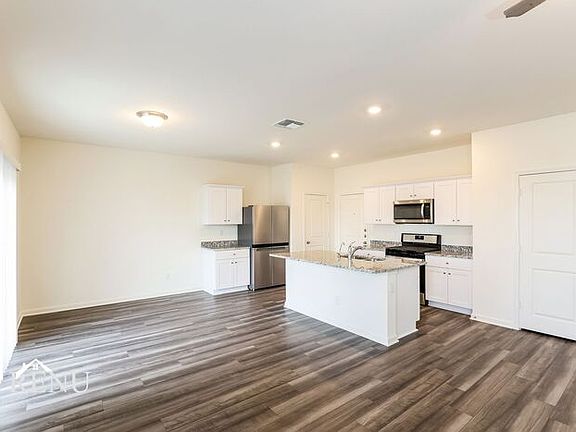 This home includes luxury vinyl plank and carpet flooring, granite countertops, and stainless steel appliances. As you navigate throughout the rest of the home, you'll find an island in the kitchen, a walk-in closet in the primary suite, and a spacious backyard perfect for outdoor activities.
