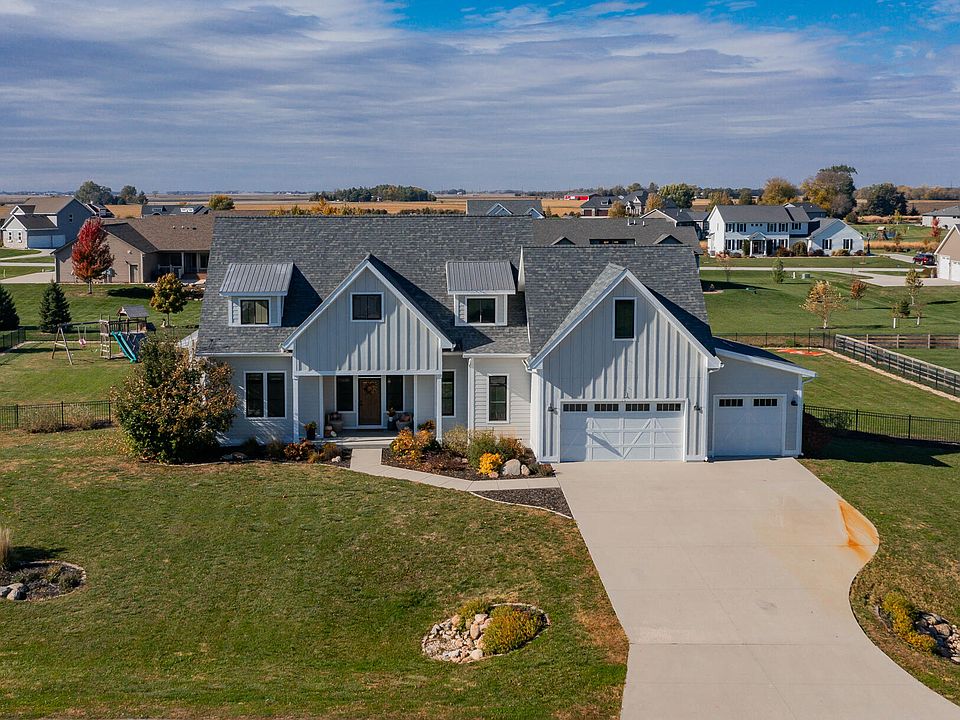 Incredible custom home with nearly 4000 sq. feet of living space, 5 bedrooms, 4.5 baths located in the popular Cameron Estate subdivision on a 1 acre fenced lot! This home built by Prestige Home Builders features an impressive great room with wide plank wood floors, rustic wood beams, gas fireplace and charming light fixtures. The spacious kitchen boasts painted cabinetry, large center island and sink with picture window. Enjoy the adjacent walk-in pantry. The primary suite can be found on the main level with gorgeous ensuite bathroom complete with dual sinks, floor to ceiling tiled shower, soaker tub and walk-in closet. Also on the main floor and conveniently located just inside the garage entry is the oversized locker/mudroom system, 1/2 bath and laundry facilities. The upper level features 3 bedrooms (2 with a jack-n-jill bathroom setup), and the 3rd with its own private bathroom. Finished lower level has a full bar, family room, bedroom, fitness room, additional bath and large storage room with built-in shelves. Fall in love with the screened porch, and stamped concrete patio out back. This home has so much to offer! Gilbert schools.
