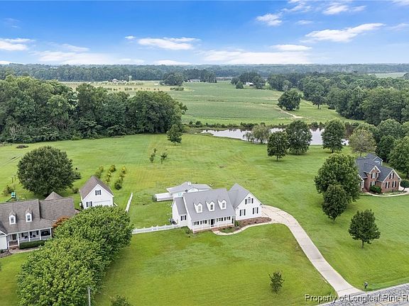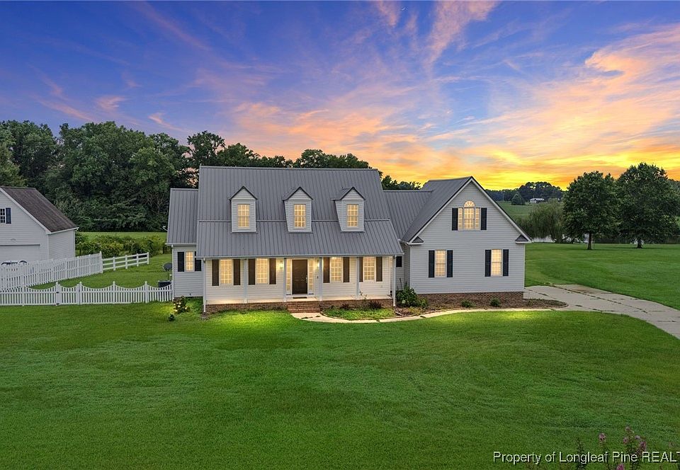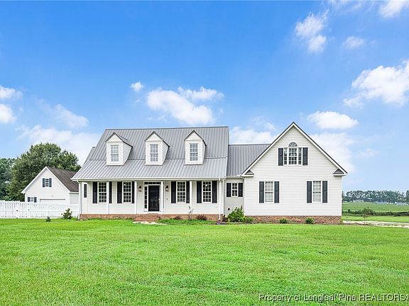 Country living at it's best! Conveniently located by downtown Angier and less than 20 minutes to Fuquay-Varina. This 3 bed, 2.5 bath with a bonus room is situated on almost 2.5 acres with direct pond access in your back yard. A cherry on top with a metal roof already in place! The open layout of the dining room and kitchen invites you to make the space your own. Open the french doors in the living room to enjoy the fall weather on your back porch. First floor primary bedroom suite features a large updated shower. All other bedrooms on the second floor with the bonus room. Two sets of stairs mean you can access the second story from either side of the house! Bring all your animals, the mini barn is currently set up for chicken lovers.