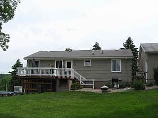 Modern ranch with terrific view. This ranch has been totally renovated. It has a 2 car garage and a full finished basement. The property is in the country at the end of a paved road yet only a mile from town. The view of the valley and mountains is n