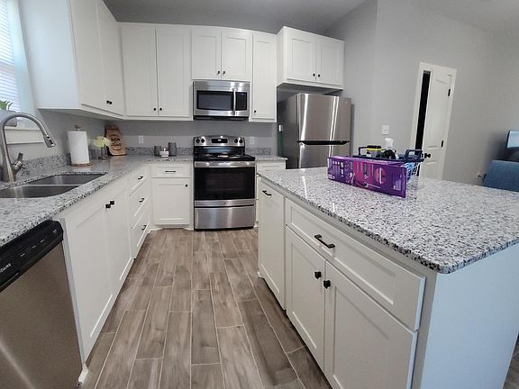 Nice floor planFenced patio areaStainless steel appliancesGranite countertopsKitchen islandBeautiful light fixtures