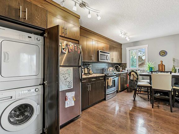 Welcome to this bright and inviting top-floor corner unit in the heart of Cliff Bungalow with downtown views! An ideal opportunity for first-time buyers, downsizers, or anyone looking to enjoy one of Calgary's most walkable neighbourhoods. Thoughtfully updated, this 1 bedroom, 1 bathroom condo combines modern comforts with a warm aesthetic. Inside, you'll find hardwood flooring, neutral tones, and an open layout that makes the space feel airy and functional. The kitchen features granite counters, stainless steel appliances, and plenty of prep space, while the adjacent dining and living areas offer flexibility for both everyday living and entertaining. Convenient in-suite laundry hides seamlessly as a pantry in the main area. As a top-floor corner unit, natural light pours in throughout the day, creating a cheerful atmosphere year-round. The quiet low-rise building adds to the sense of privacy and community. Location is the true standout—just steps from the vibrant amenities of Mission and Cliff Bungalow. Enjoy some of Calgary's best cafés, restaurants, and boutique shops right outside your door. The Elbow River pathways, 4th Street, and 17th Avenue are moments away, and you're within walking distance to the Stampede Grounds and the downtown core, making commuting and city events effortless. Book your private showing today!