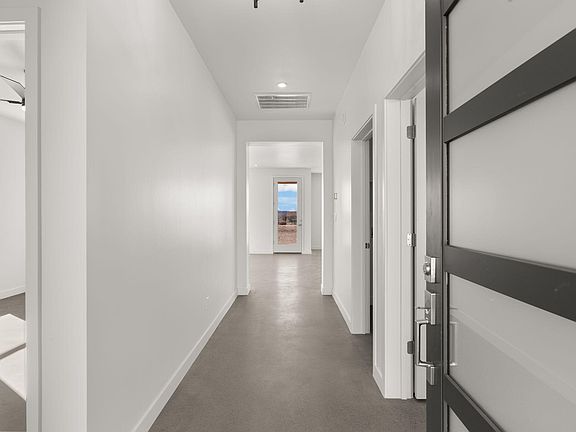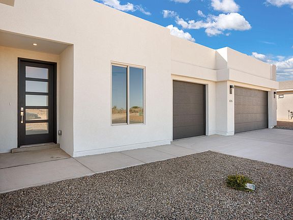 Builder offering 2% Concessions with full price offer! 4 bedroom 2.5 bath Neoteric floor plan by Fellowship Homes in Rio Rancho on 0.5 Acre FULLY BLOCK WALLED IN ! This single level includes a 3 car garage and an open flow floor plan with polished concrete floors throughout. The interior is finished with hand textured walls, solid wood cabinetry, solid surface counter tops, either quartz or granite. Primary Suite is filled with natural light & has an attached ensuite that will not disappoint! With a walk-in shower, double vanity, linen cabinet, toilet room, & large primary closet. Ceiling fans in every room, tons of storage & pantry space! Over-sided back covered patio that is open to backyard space! Located in neighborhood with no HOA & no PID! Property has backyard access on 1 side!
