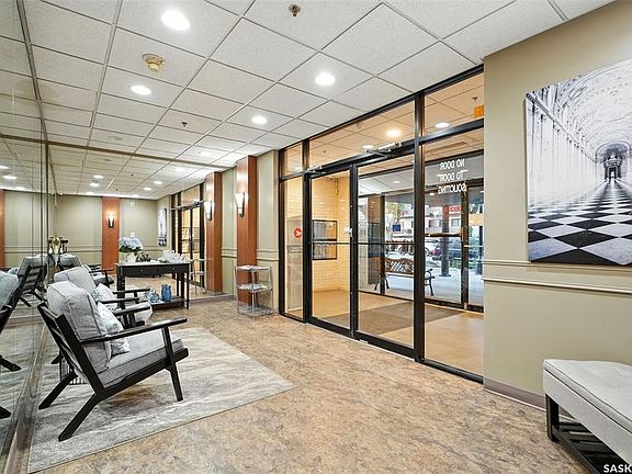 Welcome to The Wycliffe – A Rare City Park Gem! This immaculate and exceptionally spacious 2-bedroom + den condo offers modern elegance in the heart of downtown Saskatoon. With over 1475 sq.ft of beautifully renovated living space, this third-floor unit combines contemporary updates with timeless charm. Step into a custom-designed kitchen featuring quartz countertops, sleek tile backsplash, stainless steel appliances, a massive island with seating, and a full pantry – perfect for entertaining or everyday living. The open-concept layout flows seamlessly into the living room, where a cozy fireplace and classic mantle create a warm and inviting ambiance. The primary bedroom is truly a retreat – expansive in size with a walk-in closet and a stunning custom ensuite showcasing a tiled glass shower. A second large bedroom and a beautifully renovated 4-piece bath offer flexibility and comfort for guests or family. Need a workspace? The private office with French doors is ideal for remote work or a quiet study area. Additional highlights include: Covered breezeway deck – unique to this unit and perfect for morning coffee or evening relaxation Crown molding throughout, newer paint, flooring, and trim In-suite laundry with washer and dryer included Newer windows and doors, wide hallways, and 2 elevators for convenience Covered parking stall included Beautifully maintained building with an elegant entrance and welcoming common areas Located in one of Saskatoon’s most desirable neighborhoods, you’re just steps from the river, downtown core, restaurants, shopping, City Hospital, and more. This condo must be seen to be truly appreciated. Book your private showing today – units like this don’t come around often!