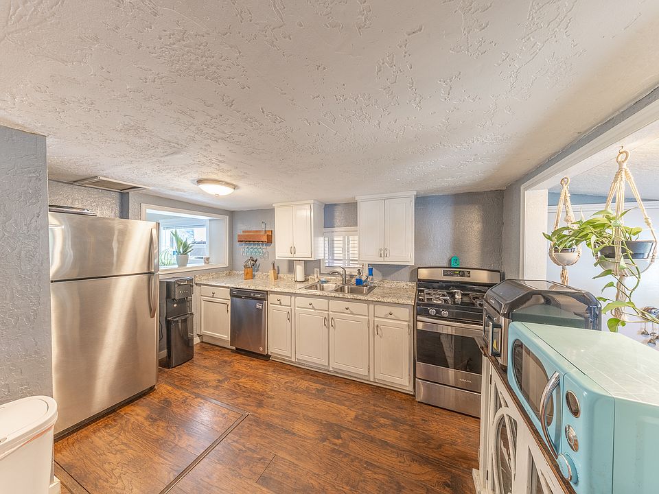 Detached garageFully fenced yardThoughtful updatesWelcoming front porchMature treesFruit treesAmple cabinetry