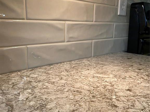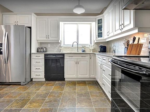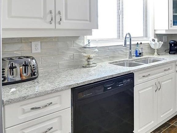 Corner unitBright white kitchenTile backsplashQuartz countertopsPantry with pull-out shelvesCozy carpetingLarge windows