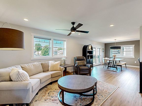 This beautifully finished 4-bedroom, 3-bath rambler blends comfort, functionality, and style. Completed in June of 2021, the home offers a warm and inviting layout with a bright living room anchored by a fireplace, a well-designed kitchen with nice countertops, center island, and stainless steel appliances, and an adjoining dining space with access to the composite deck. Thoughtful finishes and touches are found throughout, adding to the home's charm and livability. You'll also find two bedrooms on the main floor, including a spacious primary suite with a private ¾ bath, plus main-floor laundry and a full bathroom.? Downstairs, the finished lower level offers a large family room featuring a beautiful gas fireplace with custom stonework and built-in cabinetry for added storage. Two additional bedrooms, a full bath with tiled tub surround, and a spacious bonus storage room round out the lower level.? The home includes a premium high-efficiency HVAC system with WiFi-enabled controls and a hospital-grade electronic air filtration system for enhanced indoor air quality.? Outside, enjoy the generous backyard with a fire pit, garden shed, and plenty of space to spread out. The attached garage offers great storage and organizational options.? ?This meticulously maintained? home offers the ideal balance of everyday living and entertaining space.