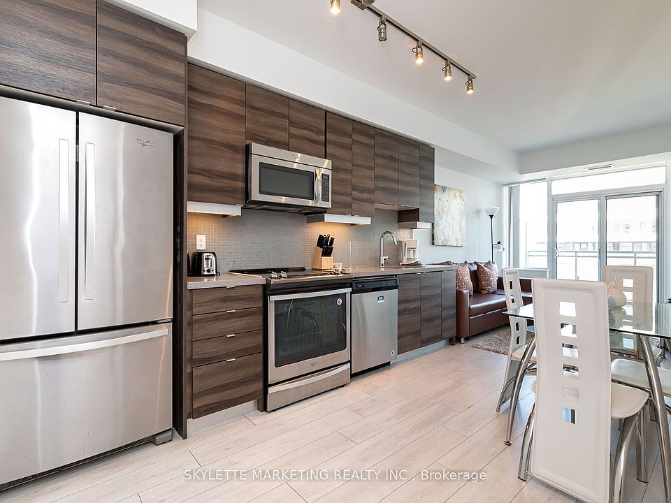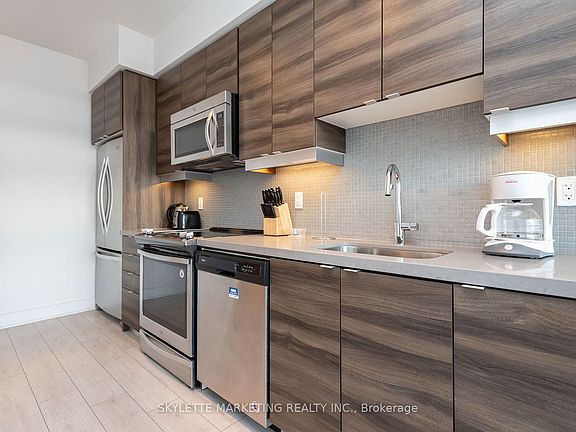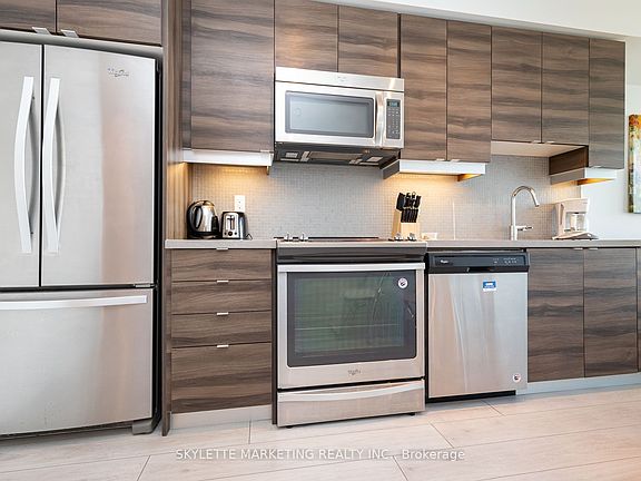 Welcome Home to a Rarely Offered Suite, Featuring City Views in One of Toronto's Most Vibrant Residences. This 1+1 Bed 2 Bath Blends Upscale Urban Living With Unmatched Convenience in the Prime King West / Fashion District. Step Into a Bright and Functional Layout Featuring a Versatile Den, Ideal for a Home Office or 2nd Bedroom, Two Full Modern Bathrooms, Wide-Plank Flooring and Floor-to-Ceiling Windows That Flood the Space With Natural Light. The Open-Concept Living Area Is Designed for Both Comfort and Style, With Premium Finishes Throughout. Residents Enjoy Building Amenities Including a Fully Equipped Gym, Outdoor Pool and 2 Hot Tubs, Rooftop Terrace, Sauna, Theatre Room, Party Lounge, 24-Hr Concierge, Visitor Parking, Guest Suites and Secure Bike Storage. At Your Doorstep, You Will Find Award-Winning Restaurants, Bustling Nightlife and Boutique Shops. Walk Score, Transit Score, and Bike Score Are All Exceptional, Making Day-to-Day Living Effortless. Parking Available for Rent Directly From Building Management at Extra Cost. Furniture Shown In Photos for Staging Purposes Only. Professional Cleaning Will Be Completed After Current Tenant Moves Out Feb 1.