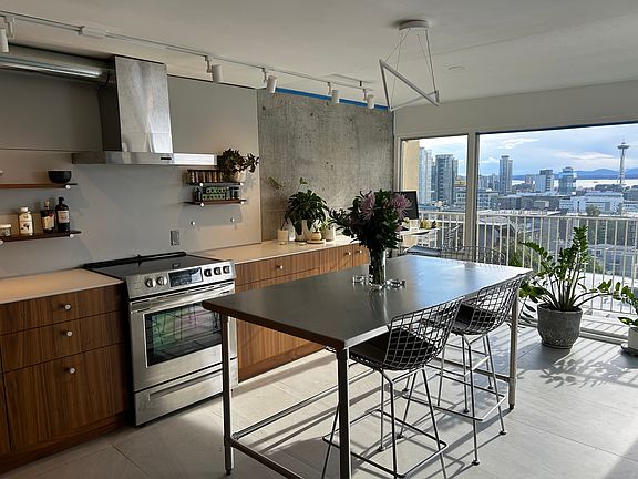 Unit has recently remodeled kitchen and bath, in-unit washer/dryer; and large private lanai; The kitchen, dining, and living areas offer stunning, floor to ceiling expansive view of downtown Seattle, Space Needle, Olympic Mountains, Queen Anne Hill, & Lake Union. Teak wood flooring in living and bedroom areas, tile in kitchen and upgraded finishes. Heated tile floor in bathroom. Plenty of closet space.