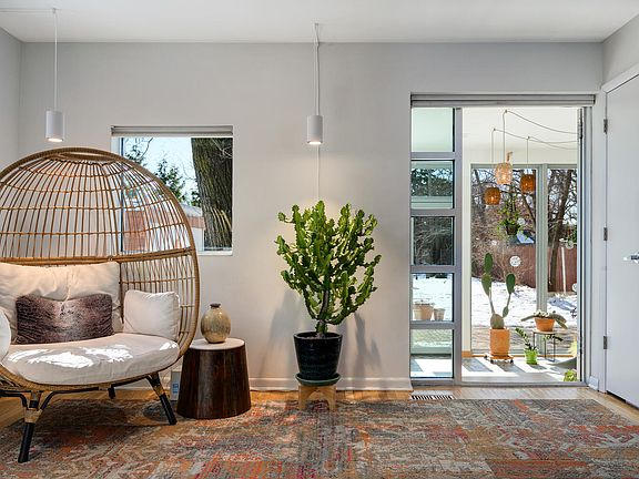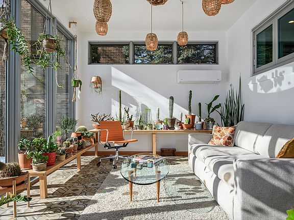 A modern architectural gem set within the storied landscape of Riverside and featured in Chicago Magazine, this one-of-a-kind residence offers a sophisticated expression of contemporary living thoughtfully integrated into a historic setting. Reimagined in 2010 and renovated in 2023, the home is defined by its airy, light-filled interiors and an open, flowing floor plan tailored to today's lifestyle. A gracious entry foyer immediately establishes a sense of volume and connectivity, offering sightlines across the entire main level. At the heart of the home, the gourmet kitchen anchors the space with a welcoming breakfast bar peninsula with quartz counters throughout stainless steel appliances, and a seamless transition to the separate eating area/dining room, and a new heated, glass-enclosed solarium that extends the living space year-round, ideal for both everyday living and elevated entertaining. Just a few steps beyond, the family room provides a comfortable retreat, with a built-in media center, a dry bar with beverage fridge, and surround sound perfect for relaxing, reading, or unwinding at the end of the day. A striking floating staircase leads to the second level, where the primary suite serves as a true sanctuary, complete with a sitting area, custom built walk-in closet with pocket doors, and a luxurious, spa-inspired bath. A second bedroom, an updated full bath with double sinks, and a lofted office with an abundance of natural light complete this level. The finished lower level expands the home's functionality with a recreation room, a third bedroom, and laundry room. Outdoors, a beautifully landscaped and fully fenced yard, a detached two-car garage and additional storage shed complete this exceptional home. Recent enhancements further elevate the home's livability and efficiency, including a heated, glass-enclosed solarium, a new roof, fence, heat pumps, appliances, basement floor, and the addition of solar panels paired with mini-split systems-delivering modern comfort with an emphasis on energy efficiency and sustainability. A rare opportunity to own a thoughtfully designed, energy-conscious home in one of the area's most iconic communities.
