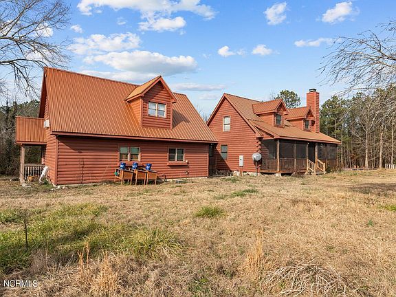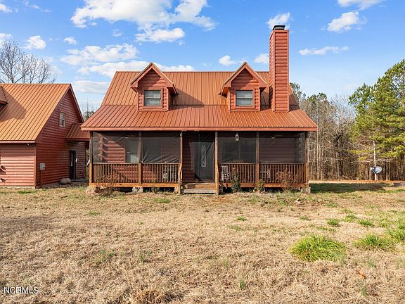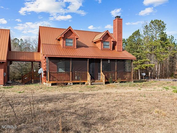 Nestled on a picturesque 9.52-acre parcel of land, this stunning 3-bedroom log cabin offers a perfect blend of rustic charm and modern comfort. The property welcomes you with a long, winding driveway, surrounded by towering trees that provide both privacy and a sense of tranquility. The log cabin exterior boasts a timeless and classic design, with handcrafted logs creating a warm and inviting facade. A spacious front porch, completely screened in, beckons you to unwind and enjoy the serene natural surroundings. An in-law suite above the two car garage is complete with full kitchen and full bath. Exterior repainted and sealed, new HVAC units, new appliances, and bathrooms renovated in 2022. Last I heard, they are not making any more land! Come live a life free of restrictions and HOAs. Call this beautiful log cabin home! TRACTOR ON PROPERTY INCLUDED IN SALE!!