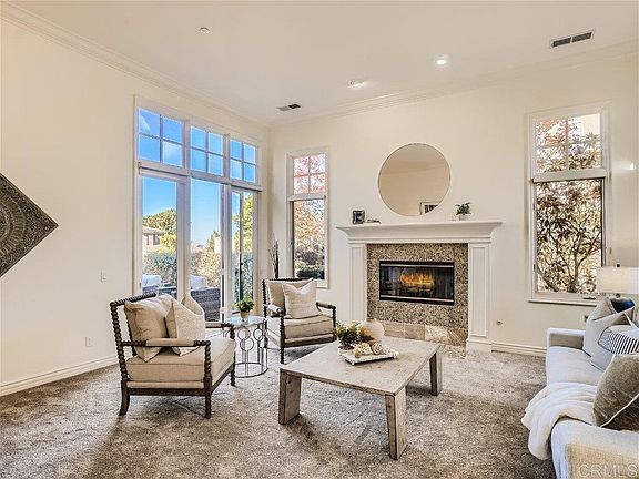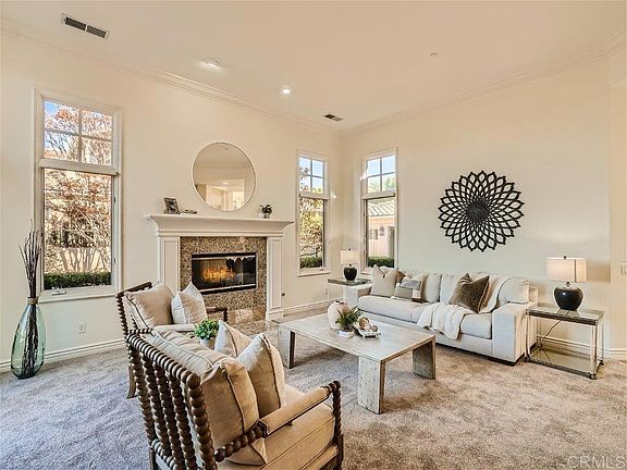 Camino De Orchidia’s Top 5 Notable Features: *Exceptional Encinitas Location with Ocean Vistas and Serene Outdoor Spaces, *Single Level with Versatile Living Areas, *Chef's Kitchen and Family Gathering Space, *Luxurious Primary Suite, *Impeccable Design and Upkeep…Step into this stunning Encinitas estate, a single-level haven boasting ocean vistas and the meticulous care of its original owner. A former model home, its west wing houses a spacious primary suite with a cozy retreat, dual-sided fireplace, and private patio. The luxurious primary bath features dual vanities, a separate shower with dual shower heads, a soaking tub, and a dreamy walk-in closet. The foyer introduces a grand, circular dining area ideal for stylish entertainment, complemented by a patio with a tranquil water feature just beyond the glass doors. The chef's kitchen offers an eat-in space, a central island with a breakfast bar, gas cooking, a custom built-in fridge, two pantries, and extra storage. Adjacent, the oversized family room boasts built-in cabinetry and a cozy fireplace. A formal living room leads to a patio with a fireplace to enjoy evening sunsets and ocean vistas. The east wing caters to versatility with an optional 4th bedroom or office, an ensuite bedroom, and an additional bedroom with a connecting hallway bath. The laundry room is spacious, providing ample storage, while the dual-zoned A/C optimizes energy usage. Natural light floods through countless windows, while lofty ceilings, recessed lighting, and crown molding infuse timeless elegance. Fresh paint, new carpeting, and luxury vinyl plank flooring in two bathrooms offer a fresh ambiance. The three-car garage boasts epoxy flooring and built-in shelving. Outside, the mature, drought-tolerant landscaping frames the property effortlessly. Nestled in an exceptional Encinitas locale, this home offers coastal living at its finest, close enough to amenities yet peacefully tucked far enough away from the hustle and bustle.