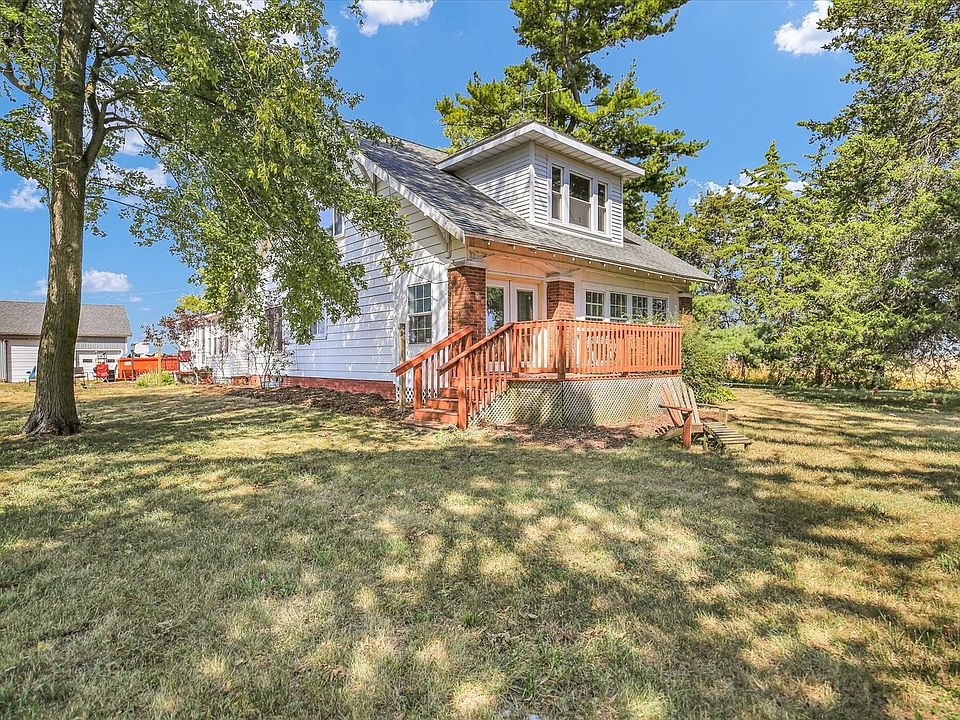 A beautiful country life is waiting for you on this charming 2-acre homestead, perfect for those seeking space and simplicity. The 4-bedroom, 1.5-bath home features the primary bedroom on the main floor, a spacious dining room and living room, original wood floors throughout, and two enclosed porches that invite year-round enjoyment. Outbuildings, including a traditional red barn, a chicken house, a garage/workshop, along with garden space and a pasture, make this ideal for hobby farming. A Generac whole-house generator with a dedicated 250-gallon propane tank provides peace of mind. There is also a 500 gallon propane tank which is owned, as well as a rented tank, on the property. The current wood burning stove does not stay but the seller will cap it off or provide another well constructed stove depending on buyers preference. Outbuildings AS-IS
