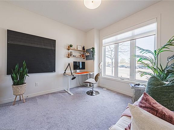 Welcome to this stunning freehold executive townhome in desirable North Oakville with over $45000 in luxury upgrades.Offering over 2000 sq. ft. of beautifully designed living space,$45000 in luxury upgrades. Offering over 2000 sq. ft. of beautifully designed living space,plus a ready-to-finish basement for extra storage or recreation. This modern home features 4 bedrooms,4 bathrooms,2 Private balconies and a double garage with parking for 4 vehicles. From the moment you walk through the door, youll feel a sense of calm wash over you.The bright, open-concept living and dining area is flooded with natural light from large windows, offering stunning sunrises.Picture yourself sipping your morning coffee as the golden rays fill your space. for added convenience, the family room,breakfast area,and primary bedroom feature automated shades The upgraded gourmet kitchen boasts premium stainless steel appliances,a gas stove, elegant two-tone cabinetry, and modern brass finishes. The high-end quartz countertops extend seamlessly into a full quartz backsplash,while the large waterfall island is the perfect spot for gathering with family and friends. The breakfast area leads to a spacious deck perfect for evening relaxation, weekend BBQs, and intimate gatherings. With a gas line installed, hosting outdoor get-togethers has never been easier.The inviting family room offers a cozy ambiance with a large window and stylish wall-mounted electric fireplace.Additional upgrades include automated shades, modern flooring, custom light fixtures and premium hardware finishes. Located in a prime North Oakville community,this home is just minutes from major highways (403&407),scenic trails, top-rated schools, shops, and restaurants.This is your chance to own a beautifully designed modern home that offers not only style and function but also a true sense of serenity because you deserve a home that feels as good as it looks.