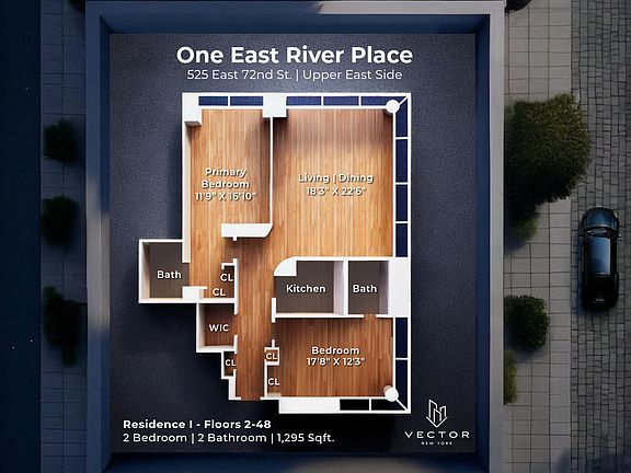 -Enjoy breathtaking East River views through floor-to-ceiling windows.