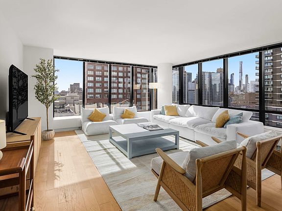 This corner two-bedroom residence, distinguished by its abundant natural light and expansive layout, offers an exclusive retreat in one of the Upper East Side's best buildings. Floor-to-ceiling windows frame sweeping views of the city to give guests an unforgettable NYC experience.