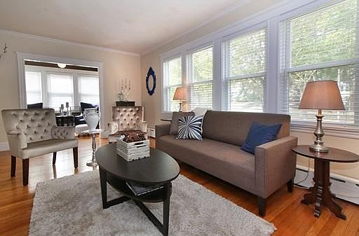 Renovated Colonial in desirable West End location. Spacious bright rooms with crown moldings, chair rail and built-ins. Fireplace in LR, Twin China cabs in DR. Newly gutted and renovated kitchen with plenty of cherry wood cabinets, silestone countertops, breakfast and wine bar. Both bathrooms were gutted and beautifully renovated. Wide staircase takes you to the second floor with unusually large bedrooms, one room has a brand new balcony. Easy access to public trans and Routes 93 & 99. Newer heat and windows. New roof in 2012.