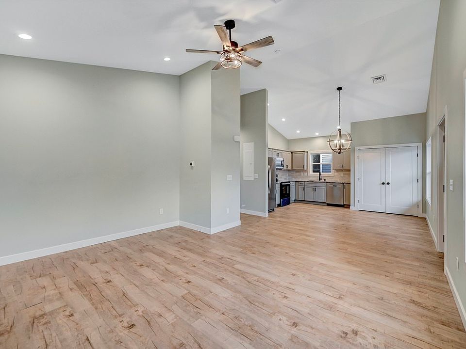 Ready to live in this stunning 2-bedroom, 1-bathroom duplex. Every inch of this single-floor home has been designed with modern living in mind soaring vaulted ceilings, gorgeous LVP flooring, and designer finishes that give the living space it's bright, airy feel. Central air keeps the home comfortable year-round, while brand-new energy-efficient windows let in plenty of natural light and help keep utility costs down.
