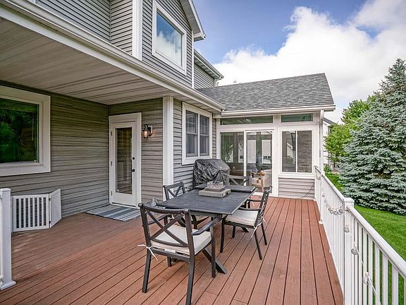 No show until OH 6/9. Welcome to Hawthorn Ct! Situated on beautiful corner lot on cul-du-sac across from Glacial Drumlin Trl w/ water views. This 3 bedroom, 3.5 bath home has it all: covered front porch, double doors with transom, crown molding, hardwood floors, main level office, formal dining & dinette w/ serving area, formal front living room + hearth room featuring white brick fireplace w/ custom mantle. The kitchen features upgraded appliances, counters, island w/ breakfast bar, white cabinetry & backsplash. Be amazed by the newer 4 season room w/ vaulted ceiling, windows galore, gas fireplace & doors leading to upgraded composite deck & patio. LL is finished with rec room, full bath, bonus room and storage. Dishwasher in photos being replaced w/ Samsung 80R2031US