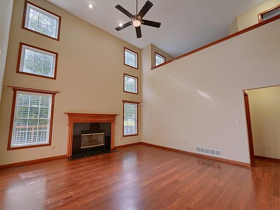 This lovely two-story home not only has gorgeous curb appeal but comes complete with 1,862 sq ft, sits on a great lot with fenced yard and newer deck. The freshly painted home has an open floor plan with cathedral ceiling, gas fireplace and stunning windows bringing in loads of natural light. First floor master suite, deluxe bathroom, and large walk-in closet. Two of the three bedrooms are located on the newly carpeted second floor with full bath; loft could easily be converted into fourth bedroom. The kitchen has newer appliances, eating space and laminate flooring. A separate dining room/den is located just off kitchen. First floor laundry, partial basement and two-car garage. New roof in 2013 and radon system. Move-in ready!