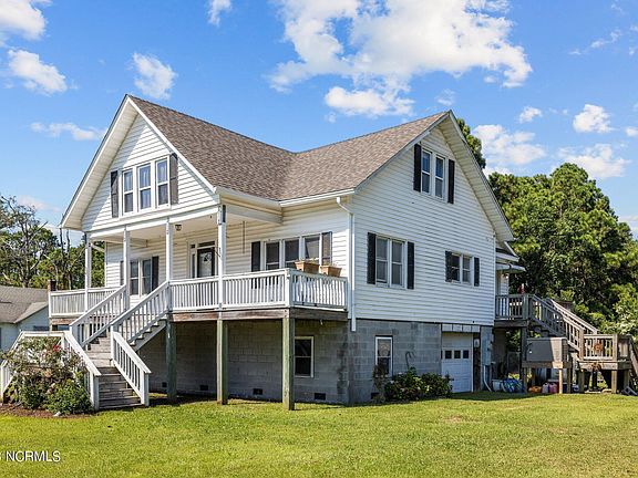 This 3BR/1BA home was built in 1928, but was raised and beautifully remodeled in recent years. Located in the charming Down East community of Davis, it has something for everyone. Downstairs features wood flooring, a large master bedroom, a fireplace in the living room, a formal dining room, and stainless-steel appliances. The back entrance leads you into a mud room and laundry room with built in storage. Upstairs has two additional bedrooms and one unfinished room that is currently used for storage. Below the home, the 1000 sq. ft garage space has room to store all your toys or have your own workshop including built in work benches. For your furry friends, the garage has a built-in kennel that leads to the fenced in back yard. The back deck and the large covered front porch are perfect for sitting. Coming with the home is a storage shed outside, plus a Kohler whole house generator. Just 5 minutes to the Oyster Creek boat ramp, this location will have you on the water in no time. Come see what this home and Davis Shore has to offer. Seller offering a $2k allowance towards buyer closing costs with an acceptable offer.