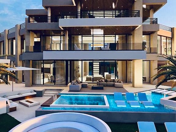 Resort-style poolBar overlooking the riverMedia roomPanoramic skyline viewsGlass wallsExpansive entertainment terracesGourmet kitchen