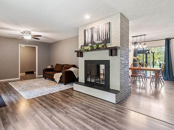 Absolutely beautiful and newly refreshed rambler located on a fenced lot with many updates inside and out! The inviting covered entry has an impressive, beveled glass door with keyless entry. The living room and dining room both have paneled walls and modern wallpaper, offering warmth and rich tones. The double-sided, wood-burning fireplace has recessed accent lighting and is the focal point in both the living room and dining room! The plank flooring provides a seamless, continuous flow which creates a sophisticated and contemporary feel, making the home feel even larger. New plank flooring, (2024). The informal dining room is adjacent to the deck with beautiful metal gazebo, perfect for Summertime BBQs and entertaining! The dining room offers plenty of space for a large table, perfect for family gatherings. You'll enjoy the warmth of the fireplace while entertaining guests! The dining room adjoins the kitchen which means cooking while remaining part of the conversation! The garage service door is located off the dining room, making putting away groceries a snap! Have kitties? The door leading to the basement already has a kitty door for easy access to a litter box in the basement. The kitchen has plenty of cabinet and countertop space and features modern grey stainless-steel appliances which were added in 2019. There's also a large pantry closet for added storage, charming, ceramic tiled backsplash on both the sink and stoves sides of the kitchen make for easy clean-up and a handy, built-in spice rack. The kitchen window allows for kids and pets to play supervised while prepping meals. Three bedrooms on one level! All bedrooms have ceiling fans, built-in closet organizers, new carpeting, and paint. (2024). The main level, full bathroom has ceramic tiled floors, tub surround, vanity top, and backsplash. The spacious, lower-level family room has recessed lighting and is a blank canvas for all your decorative touches! The lower level has a convenient 3/4 bathroom and additional bedroom plus a large utility room and additional storage room. The lower-level 3/4 bathroom has glass shower doors, a linen closet and plank flooring. The lower-level bedroom has a large walk-in closet. The utility room has a chest freezer, which stays with the home. There's also wood shelving for even more storage. New furnace and AC (2020), New fence (2021), New washer & dryer, (2022). The large, fenced backyard is perfect for kids & pets! There's a metal storage shed towards the rear lot line to store your yard tools and toys. The new fence was added in 2021. (Please exclude blue playhouse behind the home for sentimental reasons). The backyard has plenty of space to add a garden! The room behind the garage is an area perfect for pets. New landscaping includes ledgestone paver edging, rock, and mulch all the way around the home. Enjoy perennials such as Sedum, Roses, Hostas, Cone flowers & more!