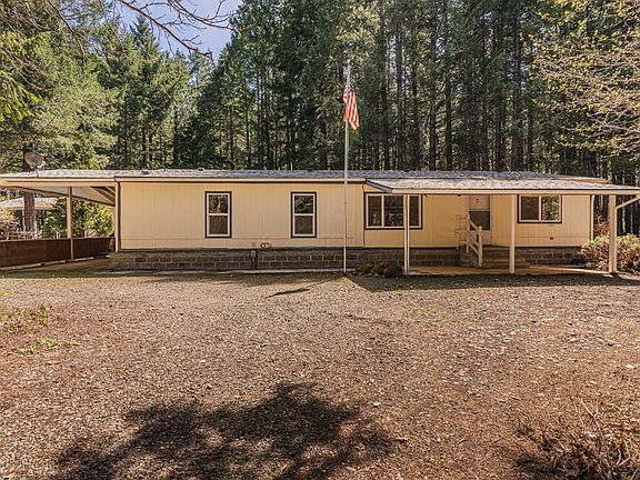 Framed by a mature forest, you will find this neat, clean double wide that has been lovingly cared for by the original owners. 1512 square foot plan is light and bright with vaulted ceilings, 3 bedrooms, 2 baths, and a bonus room or office. All of the appliances are included to make moving in a breeze. Detached garage, 2 covered RV parking carports plus by an additional workshop. Tucked back on a quiet, level 5 acre parcel just a few miles from Cave Junction, this property abuts 360 acres of BLM for added privacy and affords access to the Middle Fork of the Illinois River.