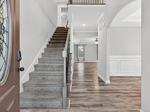 Electric fireplaceLarge great roomTrue laundry roomPermanent exterior holiday lightsTwo pantriesCovered deckWood and tile flooring