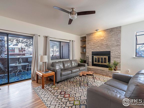 Welcome to this beautifully remodeled 4 BR, 3 BA Boulder condo, offering modern finishes, nearly 2300 SF of generous living space, and an unbeatable location-all at an exceptional price! Step inside to a spacious living room featuring brand new wood laminate flooring and a gorgeous stacked stone fireplace. The remodeled kitchen shines with granite countertops, stainless steel appliances, patterned tile, and a charming garden window. Fresh interior paint throughout and refinished hardwood floors in the entry, dining room and hallway create a warm welcome. The primary suite is a retreat, complete with a remodeled bath including double vanity and a beautifully tiled shower. The main-level secondary bedroom has a Murphy bed, maximizing space for guests or an office. The main-level bathroom has been stylishly updated with a new vanity, subway tile shower, and modern fixtures. Outdoors, a large balcony is the perfect spot to enjoy Colorado's beautiful seasons, with extra storage space for your gear and hobbies. The finished basement provides 2 extra NC bedrooms, an updated bathroom, a separate living space or office/workout room. Rare 2-car detached garage with new garage door and opener (2023) makes for valuable parking, gear storage or use as a workshop. Conveniently located near the Meadows Shopping Center, you're just steps from grocery stores, dining, coffee shops, and more. Easy access to CU Boulder, Downtown, and Table Mesa via bus routes, and nature lovers will enjoy nearby bike paths that connect to the Boulder Creek Path and Bobolink Trail. The well-run HOA includes an outdoor pool and hot tub, plus new exterior paint coming in the spring of '25. Don't miss out on this rare opportunity to own a Boulder condo with fantastic value and a prime location! Buyer to verify that all information is accurate.