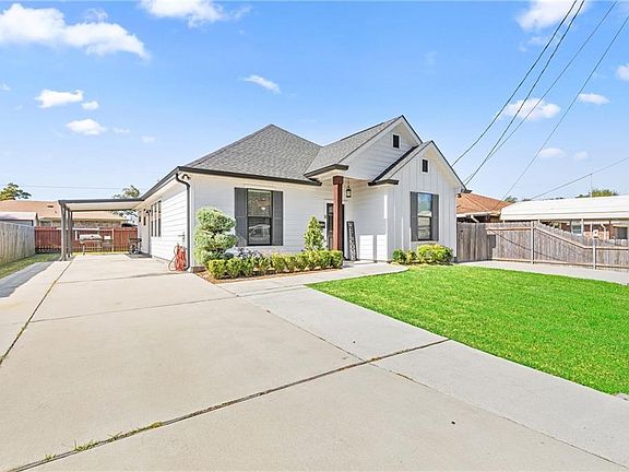 Step inside this exceptionally well-maintained, contemporary residence, only five years young that has never flooded! The property showcases a brilliantly designed, open-concept floor plan, offering a seamless flow throughout. The durable vinyl flooring, thoughtfully integrated recessed lighting, and premium, upscale fixtures create an inviting ambiance, making the generous living area ideal for hosting memorable gatherings and comfortable relaxation. The heart of the home, the kitchen, is a chef's dream, featuring a high-efficiency gas range oven, a suite of gleaming stainless steel appliances, a capacious pantry perfect for storing essentials, and a stylish island complete with a built-in sink, comfortably accommodating up to four stools for casual dining or morning coffee. Abundant natural light floods the breakfast area through its expansive four-panel windows, creating a bright and cheerful space for enjoying your morning meals. Two generously sized bedrooms, each thoughtfully appointed with double-door closets and elegant wood blinds, are conveniently located at the front of the home, with a beautifully appointed full bath situated comfortably between them, ensuring privacy and convenience. Separately positioned at the back of the home, you'll find the exquisite primary bedroom, a true sanctuary, featuring two distinct and spacious closets and a refreshing ceiling fan to keep the air circulating. The ensuite primary bath is a masterpiece of design, boasting a custom-tiled tub/shower combination with stunning ceiling-to-tub tiling, complemented by a modern pocket door that opens to a large, walk-in closet, providing ample storage for all your wardrobe essentials. The property offers unparalleled convenience with two driveways. A covered 12x20 carport provides easy rear yard access and side door entry, and a second driveway with a single gate can accommodate an additional two vehicles, ensuring ample parking for family and guests. The backyard is further enhanced by a durable TUFF shed, providing ample, secure storage for all your outdoor equipment and seasonal items. This move-in ready home is truly a remarkable find and a must-see – schedule your private viewing today!