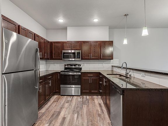 Mica View Apartments, a Diamond Rock Rentals Property. A Brand new location in East Spokane Valley located a few minutes from Liberty Lake, WA. This 3 bedroom 2 bath apartment home boasts 1,296 sqft, large chef style kitchen with stunning black granite countertops. The home features Luxury Vinyl Plank (LVP) flooring throughout the home with carpeting in the bedrooms. The interior colors of the home include grey walls, and nickel hardware and light fixtures. The spacious bathroom includes a bathtub/shower as well as a vanity with pull out drawers and a cabinet space under sink. All rooms include climate controlled heat, and the centrally located AC unit is located in the open concept common living area. This home also includes a fully climate controlled primary bedroom (AC and Heat). The apartment home requires 1x $35 carport. Utilities not included in monthly rate. Full size washer and dryer included in unit.