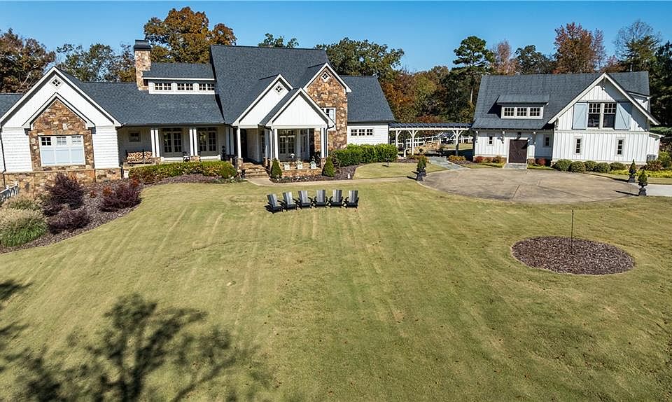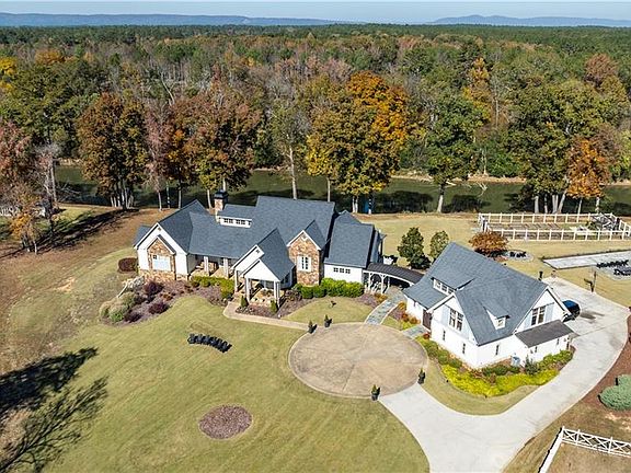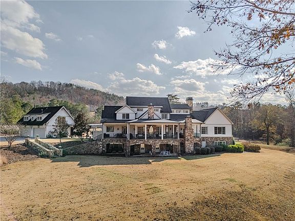 This rare French Country riverfront estate sits on almost 10 private acres in the exclusive North River Farms community, overlooking pristine Berry College land. With panoramic river, forest, and mountain views in every direction, the property offers exceptional privacy and serenity while remaining just over an hour from both Atlanta and Chattanooga. Boasting over 10,000 square feet under roof, a very extensive interior and exterior renovation has elevated this home into a luxury retreat ideal for entertaining and everyday comfort. The property features over 2,800 square feet of covered porches with tongue-and-groove solid wood ceilings, creating endless outdoor options for enjoying the surrounding scenery year-round. Outdoor amenities include bluestone walkways, fieldstone masonry walls and fireplaces, Unilock Copthorne brick patios, flagstone porch flooring, an organic garden with greenhouse, an orchard, a custom chicken coop and run, a bocce court, iron railings, a custom iron garden gate, and a striking landscape-lit fieldstone staircase with masonry pillars. Utilities and site work are already in place for a future pool, and the property includes a full irrigation system and frost-free spigots. Inside, the home opens to a dramatic two-story living room with tongue-and-groove vaulted solid wood ceilings with exposed beams, solid wood custom wainscoting, solid white oak and heart pine flooring, a fieldstone masonry fireplace, custom built-ins, and floor-to-ceiling solid wood French doors framing stunning natural views. The main-level primary suite includes remote Hunter Douglas shades, two custom closets, radiant heated flooring, dual bath areas, a large slate walk-through shower, and a soaking tub. The kitchen and keeping room feature custom cabinetry, a large island, a stone fireplace, and premium Wolf, Viking, and Miele appliances. The first and terrace levels laundry rooms also have new Speed Queen washer/dryers and LG refrigerators. Upstairs are two en-suite bedrooms with office/sitting areas with hardwood floors and custom closets, plus a library overlooking the living room. The terrace level offers a private screening room, a wood-paneled billiard room and bar, an 800-bottle climate-controlled wine cellar, exposed brick accents, a recreation room, a second laundry/kitchenette room, guest/office space, bedroom suite, steam shower/spa room, tons of storage, and a safe room/storm cellar. A 6-car garage connects to a beautifully finished apartment offering 1,400 square feet of living space above the garage, complete with its own HVAC, electrical and power service, kitchenette, and lots of custom storage-ideal for a home office, guests, extended stays, or multigenerational living on the property. In addition to its privacy and natural beauty, the estate enjoys all the amenities of the North River Farms community, which spans over 70 acres and includes a lakefront clubhouse, a stocked fishing lake, and extensive activity trails perfect for walking, running, biking, and exploring the outdoors. The neighborhood's quiet landscape, abundant wildlife, and preserved surroundings enhance the peaceful, retreat-like feel of the property. This extraordinary estate must be seen to be fully appreciated. Pre-qualified buyers should contact the Listing Agent or Hardy Realty to schedule a private tour.