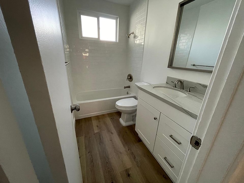 Completely redone unit including vinyl wood floors, new kitchen cabinets and appliances and all new bathroom. Large, lovely and ready for the perfect person/people who want to enjoy living in the heart of it all in a very desirable neighborhood close to everything. Owner pays for water and common area maintenance. Laundry room is in the gated garage where one space is provided.