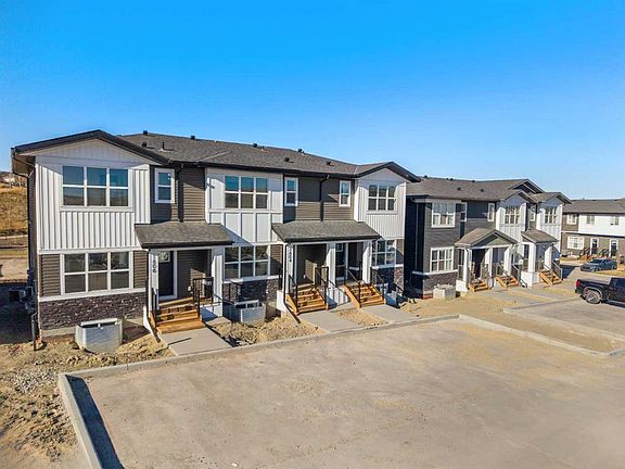 *MOVE IN READY FOR DECEMBER 2025 - MEASUREMENTS are pulled from similar unit* Welcome to the newly built #804, 525 River Heights Drive. This townhome features a HUGE SOUTH-FACING FENCED BACKYARD that offers the feel of a single-family yard. Inside, the main floor is bright and open, with a modern layout designed for both style and function. This unit backs onto a WALKING PATH AND GREENSPACE! At the heart of the home is a SLEEK CONTEMPORARY KITCHEN with QUARTZ COUNTERTOPS, MATTE BLACK HARDWARE, WHIRLPOOL STAINLESS STEEL APPLIANCES, SOFT-CLOSE CABINETRY, and a CENTRAL ISLAND WITH SEATING, ideal for casual dining or entertaining. The kitchen flows seamlessly into the dining and living areas, where LARGE WINDOWS and LUXURY FLOORING create a welcoming atmosphere. A powder room and a DEDICATED MUDROOM off the back entrance add practicality to everyday living. Upstairs, the primary bedroom includes a WALK-IN CLOSET and a PRIVATE THREE-PIECE ENSUITE. Two additional bedrooms provide versatile space for children, guests, or a home office. A four-piece bathroom and a CENTRUALLY LOCATED LAUNDRY area complete the upper floor with added convenience. The unfinished basement offers potential for future development, extra storage, or a layout tailored to your needs. Energy-efficient features such as DUAL-PANE windows, a HIGH-EFFECIENCY HVAC system, and an HRV unit support year-round comfort. Outdoors, you can relax in your FULLY FENCED BACKYARD with a REAR PATIO or enjoy a quiet morning on the COVERED FRONT PORCH. Two parking stalls are INCLUDED, and with LANCSDCAPING and SNOW REMOVAL taken care of, this property is truly low maintenance. Situated in the well-established community of RIVERSONG, you are close to schools, parks, walking paths, CO-OP and the Spray Lake Sawmills Family Sports Centre. Quick access to Highway 1 and 22 makes both Calgary and the mountains easy to reach. With quality finishes, a thoughtful design, and a vibrant neighborhood, this home offers comfort and convenience in equal measure. Please note that photos are taken from the showhome and may not reflect this property, as it is still under construction. CONTACT TO VIEW THE FREESTONE SHOWHOME at 525 RIVER HEIGHTS DRIVE – OPEN WEEKENDS 12 – 5pm!