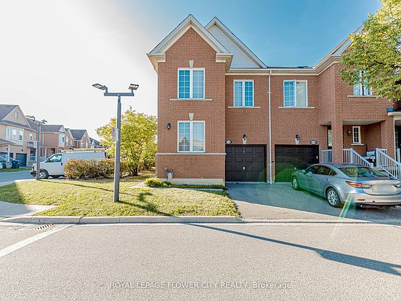 Location, Location, Location! This beautifully newly painted 3-bedroom end-unit townhome with a finished basement is situated in a highly sought-after, family-friendly neighborhood. Featuring a double door entry, bright eat-in kitchen, spacious living room with walk-out, and a huge primary bedroom with a 5-piece Ensuite, this home is designed for comfort and style. The lower level offers a recreation room that can be used as a 4th bedroom, a laundry room, a 3-piece bath, and a cold room, making it perfect for a growing family. With low maintenance fees, this property is ideal for first-time home buyers. Conveniently located close to highways 401, 407, and 410, as well as Meadowvale GO, this home is just steps from plazas, bus stops, walk-in clinics, restaurants, retail shops, and Heartland Town Centre. Families will appreciate the proximity to elementary schools, a French school, secondary schools, and access to both Asian and Canadian grocery stores. Surrounded by trails, parks, and all amenities, this property also offers future convenience with the Hurontario LRT coming in 2026, making commuting and connectivity even easier. Truly a must-see!