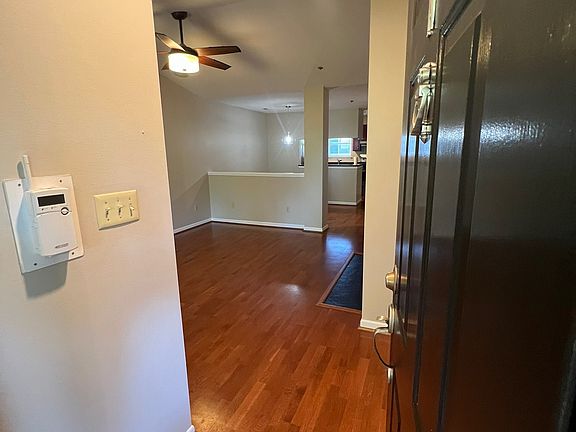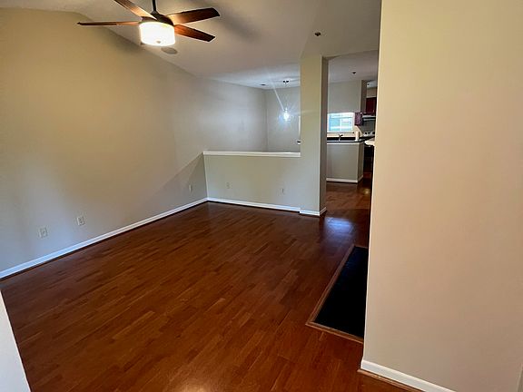 The unit features open floor plan with vaulted ceilings, neutral grey paint, ceiling fans with remote controls, dark cherry finished hardwood floors, an upgraded kitchen, washer and dryer, surround sound with TV bracket for easily mounting your TV. The patio doors provide great natural lighting for the family room. End unit allowing more of a private balcony.
