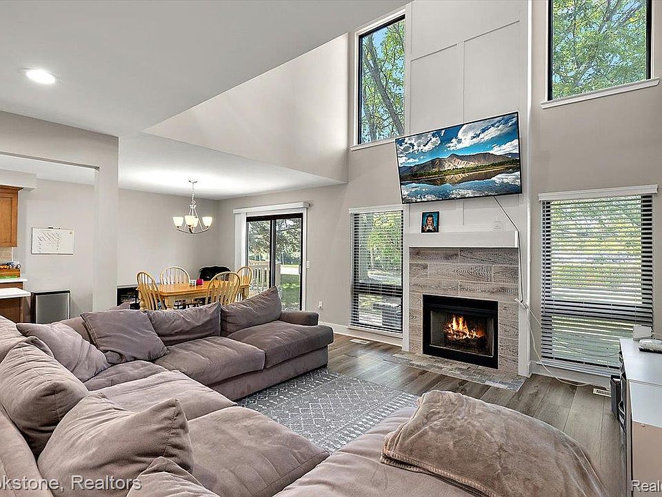 This beautifully maintained condo features a stunning remodeled kitchen with quartz countertops, center island, stainless steel appliances, sleek tile backsplash, and custom cabinetry. The main level offers newer carpeting, hardwood floors in the foyer, hallway, dining room, great room, and loft, plus custom blinds throughout. The inviting great room showcases a cozy gas fireplace, new lighting, and tall baseboards that add elegance. The first-floor master suite includes a remodeled bath, while upstairs you’ll find a spacious loft with walk-in closet that can serve as a family room or optional third bedroom. The finished walkout basement opens to a concrete patio, ideal for relaxing or entertaining. With its open, modern layout and prime location near the golf course, this home offers comfort, style, and convenience!