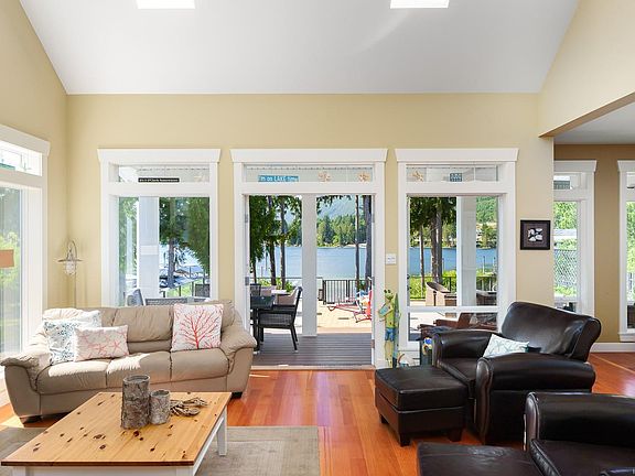 Situated in the highly desirable Point Ideal neighbourhood, this exceptional lakefront home offers over 80 feet of gently sloping walk-on waterfront. With 4 bedrooms and 3 bathrooms, this stunning property encompasses all the features you desire in a lakefront residence. The home offers an open floor plan, vaulted ceilings, a family-friendly layout, and large windows providing ample natural light, offering panoramic views of the lake and surrounding natural beauty. The property boasts a newly finished large dock as the perfect spot to relax by the water's edge, go fishing, or launch your boat for a day of adventures on the lake. The outdoor living space provides a serene setting for entertaining guests, featuring a projection screen for cozy outdoor movie nights under the starry sky. RV parking is available, plus room to store your boat securely in the elongated double garage. All within walking distance of Lake Cowichan's shops and amenities, this is a true piece of paradise!