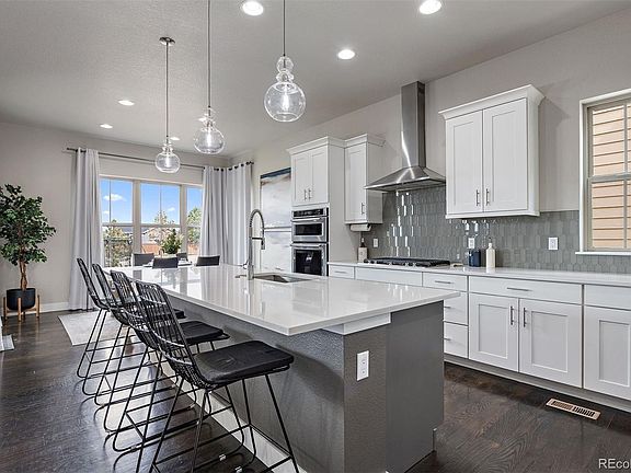 *****HUGE 80K PRICE REDUCTION***** Living in Backcountry, a gated community, loaded with designer upgrades and breathtaking views of the mountains! Indulge in the epitome of modern elegance with this 2020 mountain-contemporary Berkeley Home, meticulously designed by Goddin Sudik Architects, one of Denver's premier and award-winning architectural firms. Step inside this 4 bed, 4 bath masterpiece and immerse yourself in luxury with ebony hardwood floors, 8 ft doors and 10 ft ceilings on the main level. Marvel at panoramic mountain views from the living room, dining room, primary suite, and backyard, creating an idyllic backdrop for both relaxation and entertaining. The chef's gourmet kitchen boasts stainless steel appliances, an oversized quartzite island, glass tile kitchen backsplash and a large pantry. Step into the living room adorned with a cozy fireplace and expansive windows bathing the space in natural light. Retreat to luxury in the primary suite, featuring dual sinks, a large walk-in shower and soaking tub, herringbone-style tile, and a barn door walk-in closet for added charm and convenience. Entertain in style in the finished basement, watching your favorite movie or game in your new home theater equipped with a 125" screen and Vava projector. The basement features a spacious family room with walk-up bar, a large recreation area, an art/craft room, a guest bedroom for ultimate comfort and a spacious storage room. Outdoors you can embrace the serene beauty with professional landscaping and a covered patio featuring a tongue and groove ceiling, perfect for enjoying Colorado's stunning vistas year-round. Enjoy access to 8,200 "Wild Acres" of Backcountry's private open spaces, with miles of natural trails, and indulge in the Sundial House's resort-style pool, fitness center, kitchen, and award winning schools and Valor Christian. This is more than just a home; it's a lifestyle. New coffee shop near security gate just opened! www.525RedThistle.com