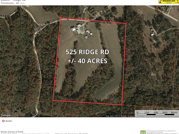 ESTATE AUCTION - SAT. MARCH 9 @ 10am: 3 bedrooms brick house with 2 baths, formal living room, kitchen, den, full basement, central heat & air, city water, detached garage, shop building, equipment shed, & barn on 40 acres. Mostly Open/Some Woods. Property has automatic watering system for livestock and is fenced & cross fenced. Nice location.