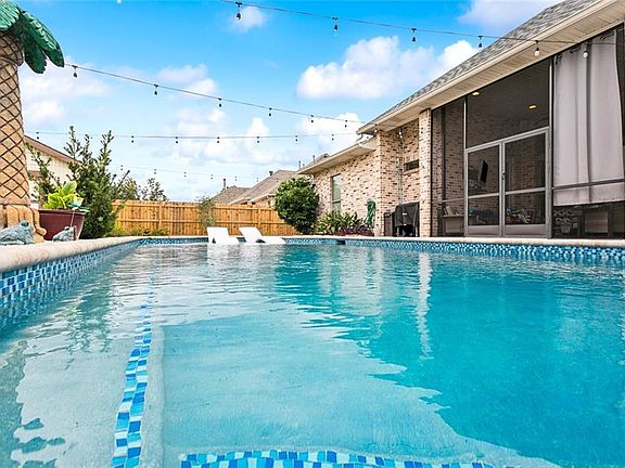 This just might be your DREAM HOME!! Never flooded & inexpensive flood insurance; NEW fortified roof, Rhino Shield on stucco, & new fence. Large inground heated saltwater pool (500K BTU heater) with hot tub. The house looks almost NEW, and has SO many amenities…Enter through double front doors with beveled glass. 12’ ceilings in primary bedroom & all public areas; 10’ in all other bedrooms & baths. Engineered bamboo flooring throughout, except the baths, dining room & laundry are tile. Kitchen has granite countertops, 6-burner gas range/oven w/pot-filler, & wine cooler. Whole house (22kw) natural gas generator. Lovely screened room with new tile floor. Closets galore, brick accent walls in primary bedroom, kitchen & den; laundry room has sink; primary bath has jetted tub & double sinks. Garage has insulated doors, LOTS of built-in cabinets & still has room for an extra refrigerator or freezer. Don’t hesitate; make your appointment today!