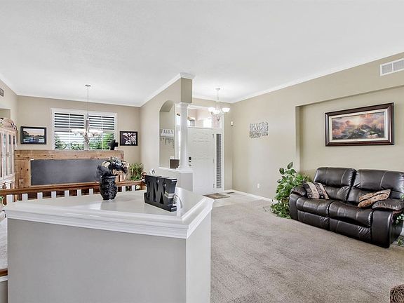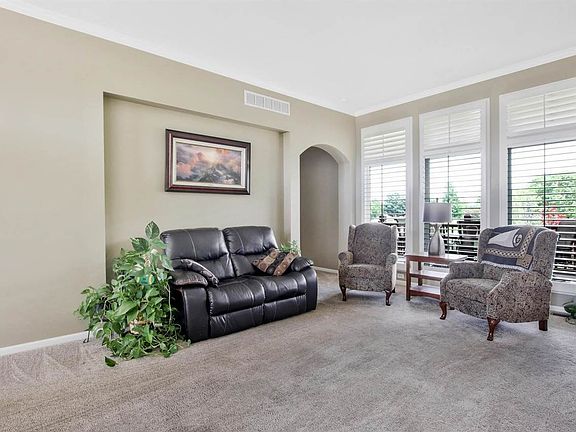 Spacious 5 BR 3 BA 3 Car Garage with a golf course view in Auburn Hills 8th Addition! NO SPECIALS! Walk into the living room where there are large windows with beautiful plantation shutters & transom window above which allows abundance of natural light to fill the room. You will love the tall ceilings, crown molding & arched doorways. The sensational kitchen has an abundance of quality stair - stepped cabinetry with roller trays in base cabinets, large eating bar, butler's pantry, and large double pantry with roller trays. Off of the kitchen you will walk out to your fabulous covered deck with golf course views! Next to the kitchen there is a cozy hearth room with a gas fireplace. Separate (Not a walk-thru) oversized laundry room with sink, cabinetry, hanging rod, & built in ironing board. Split bedroom plan with two bedrooms and one bath, on the other side of the house. Located downstairs is a huge family room with wet bar, fireplace, two additional bedrooms, bonus room, and another bathroom. The family room extends around the stairs where there is more space for a pool table & sitting area. Other things we love about this home is the fantastic landscaped yard that has a well & sprinkler system, located at the end of a cul-de-sac and quiet neighborhood.