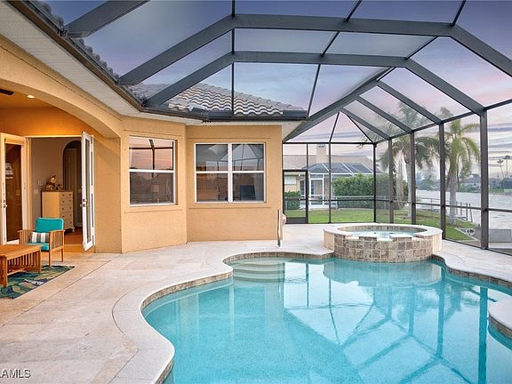 Incredible $50K price improvement, this home delivers unmatched lifestyle and value. Escape to Exceptional Living in this elegant custom pool home, perfectly situated on a wide freshwater canal that connects to the 7 serene lakes of Lake Kennedy. Featuring soaring ceilings, custom architectural details, and abundant natural light, this 3-bedroom, 3-bath home offers over 2,400 sq. ft. of refined living space. The chef’s kitchen features granite countertops, stainless steel appliances, a butler’s pantry, and a breakfast nook with tranquil views of the pool and waterway. Step outside to your private screened lanai, complete with a sparkling pool with built in jacuzzi, outdoor kitchen, and peaceful waterfront backdrop perfect for entertaining guests or relaxing in the Florida sunshine. From your backyard canal, enjoy fishing, kayaking, or cruising into Cape Coral’s interconnected lakes at sunset. Inside, you’ll appreciate tile & luxury vinyl plank flooring throughout, a central vacuum system, generous storage, and more. Located in a quiet neighborhood close to shopping, dining, and beaches, this meticulously maintained home blends comfort, style, and the waterfront lifestyle—plus, it’s in Flood Zone X for added peace of mind. With this significant price improvement, now is the perfect time to make your move. Don’t miss this rare opportunity to live the Cape Coral dream—schedule your private tour today!